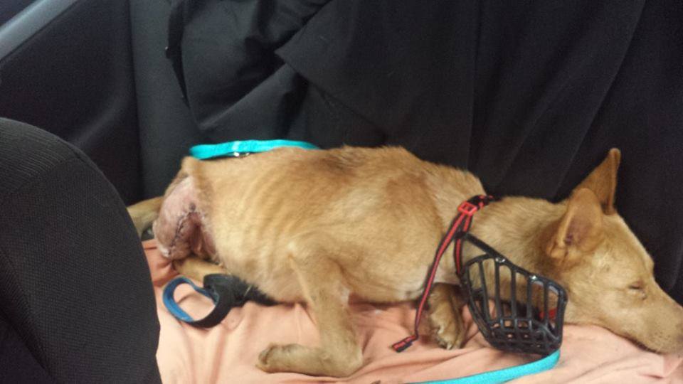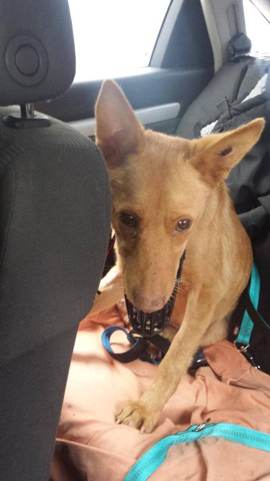 Today we had to pick up our little Faith from the clinic, she can’t stay there because there is no one there during the week end. We put her in the Betty boarding kennel but we’ll do everything we can to find her a fosterer. Today we bought her antibiotics and a muzzle, she is not aggressive but she has lost her trust in humans because of everything she’s been through.