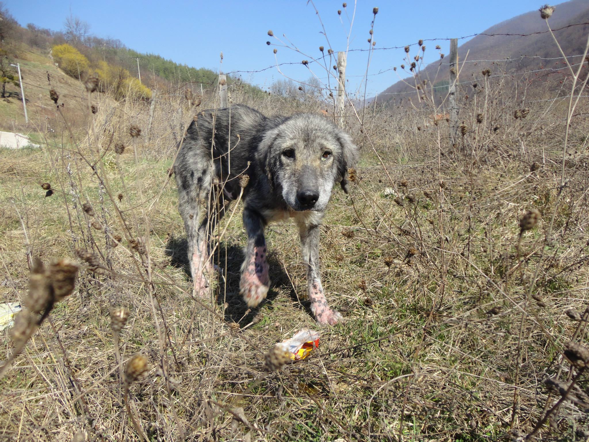 His wounds are bleeding and he was covered with ticks. We drove him to the vet last night where received antibiotics, was cleaned from the ticks and got tick treatment. Today he started with demodex treatment and shampoo.